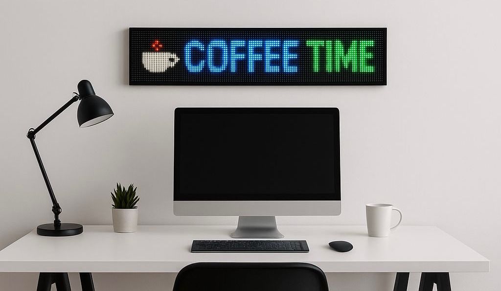 You can change the text, colors, and animation effects directly through the WaveeBar mobile app or included remote controller.